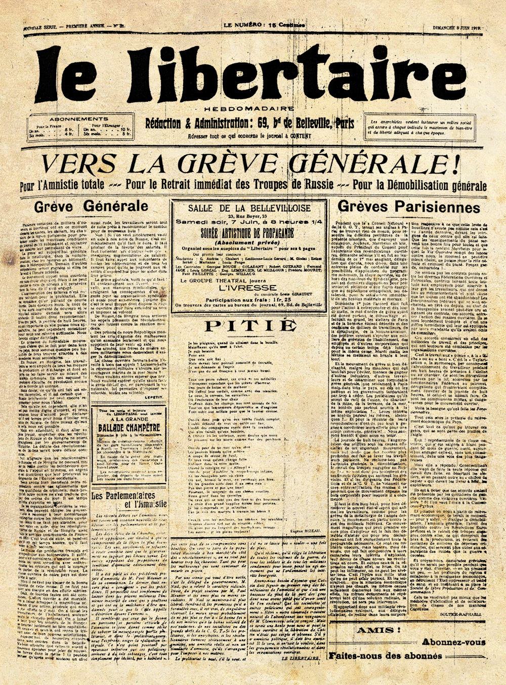 Après l’échec de la manifestation du 21 juin, Monatte écrivait : "Les masses sauront qu’il n’est plus possible désormais d’hésiter et de s’abuser soi-même par de faux espoirs ; et qu’il est nécessaire d’épurer sans merci le personnel des syndicats." (La Vie ouvrière 25 juin 1919).