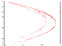 état du système est représenté dans cet espace par un point dont les coordonnées sont égales aux valeurs numériques des variables du système. Dans cette représentation, un mouvement régulier correspond à un diagramme simple, un attracteur. Si le mouvement est aléatoire, les points représentatifs du système remplissent l’espace des phases au hasard : aucune structure n’apparaît. Quand le mouvement est chaotique, les points représentatifs paraissent à première vue aléatoires. Néanmoins, quand on observe le système suffisamment longtemps,on constate que les points dessinent une forme particulière, qui présente une structure feuilletée.