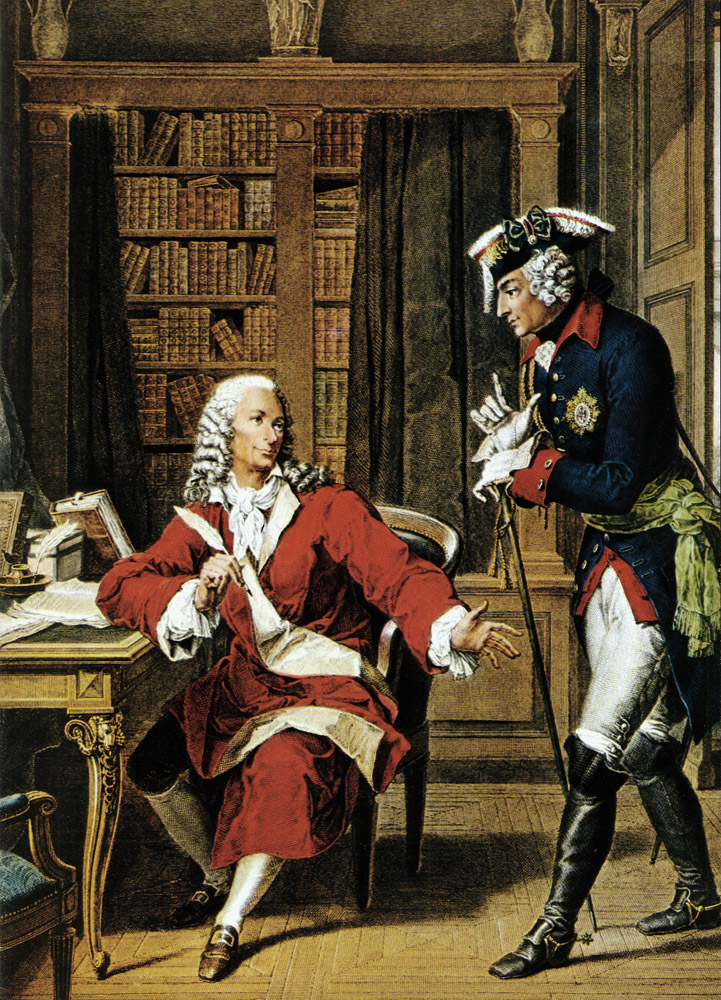 Voltaire faisant sa cour au roi Frédéric II de Prusse