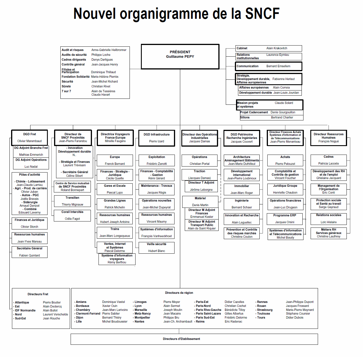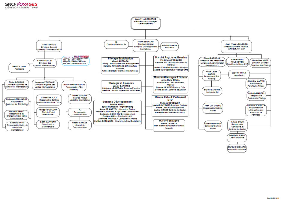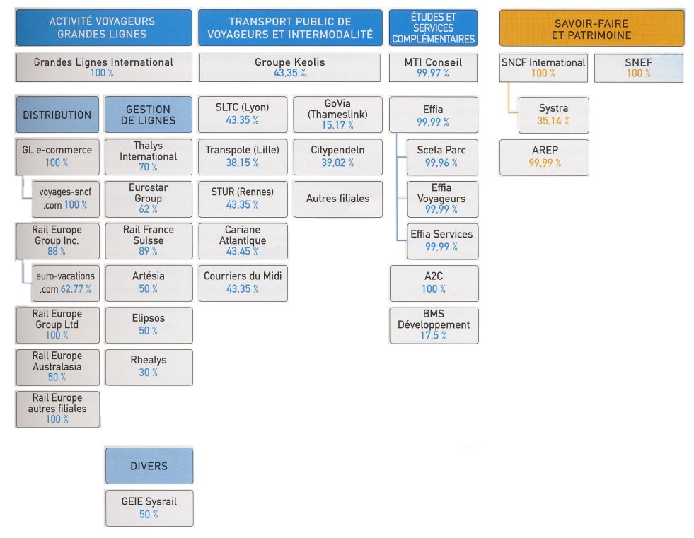 Vous avez connu les trains qui arrivaient et arrivaient à l’heure ? Eh bien, perdez l’espoir de les revoir ! Les trains ne sont plus là pour transporter des passagers mais pour créer des profits ! Et, si vous ne comprenez rien aux organigrammes de la SNCF qui suivent, c’est que vous n’êtes pas un financier spécialiste d’extraire des profits des services publics...