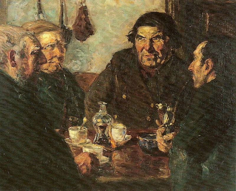 L’homme boit le café que vient de servir la femme, les autres personnages coupent la nourriture. On peut bien voir l’attention aux détails que Vincent Van Gogh met dans sa peinture, par exemple en regardant les mains des personnages coupant la nourriture. Ce tableau décrit une scène typique du monde paysan, que Van Gogh a réalisé en se basant sur le contraste entre la luminosité et l’ombre. Van Gogh a ainsi réalisé plus de cinq cent tableaux décrivant des scènes populaires.