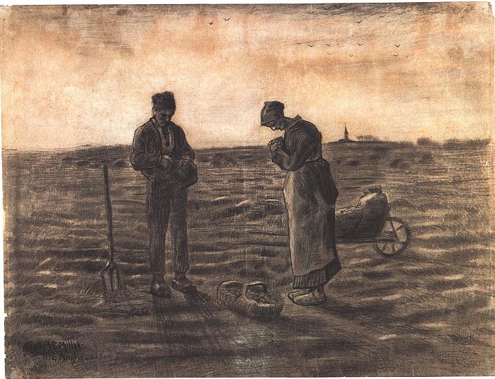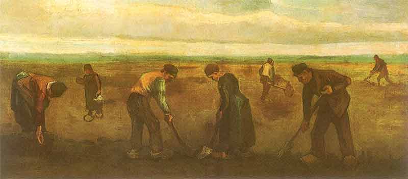 De sa vie parmi les mineurs et de sa mission évangélique, Vincent Van Gogh gardera l’image de la misère humaine qui apparaîtra dans une partie de son œuvre. Il peint ce qu’il appelle des "figures", c’est-à-dire des postures humaines, sans forcément montrer les visages. Pour représenter les petites gens, il s’inspire de Millet. Ainsi, pour son "Semeur", et ses "Paysannes au champ" (1883) directement inspirées de l’Angelus de Millet.