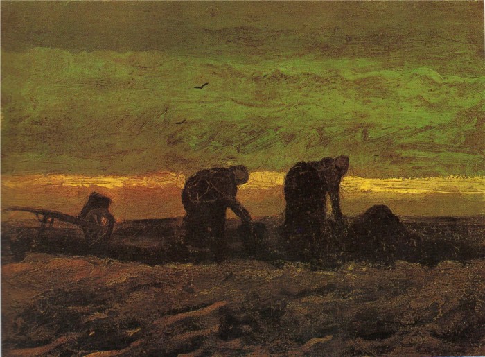 Elle est la preuve de son observation studieuse de l’aspect des paysans comme il les décrit dans une lettre à son frère : « des visages rudes et plats, aux fronts bas et aux grosses lèvres, pas affilées, mais pleines et semblables à celles des tableaux de Millet », dans le but d’arriver à un mélange de couleurs qui rendrait leurs carnations vibrantes et semblables à celle « d’une pomme de terre bien poussiéreuse de terre et bien entendu pas épluchée ».