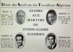 L’histoire vue par les nationalistes gomme les élans spontanés des masses, comme en 1945. Comme elle gomme les mouvements prolétariens. L’histoire prolétarienne de l’Algérie est absente car tout le monde, impérialisme, bourgeoisies, nationalistes, gauche réformiste et stalinienne, syndicalistes réformistes ont toujours tout fait pour effacer cette histoire et présenter le cours des événements comme allant inévitablement vers ce qui s’est finalement passé : l’impasse militariste du FLN, menant à une dictature militaire, tout fait pour faire croire qu’il y avait fatalité à ce que le FLN.