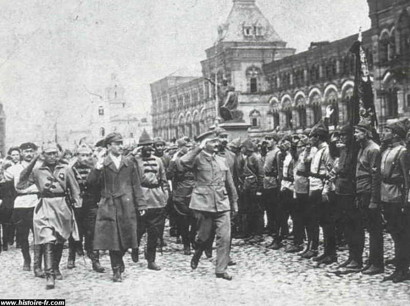 La grande guerre, issue des contradictions de l’impérialisme mondial, entraîna dans son tourbillon des pays qui se trouvaient à des étapes différentes de développement, mais elle posa les mêmes exigences à tous les participants. Il est clair que les charges de la guerre devaient être particulièrement insupportables pour les pays les plus arriérés. La Russie fut la première contrainte à céder le terrain. Mais pour se détacher de la guerre, le peuple russe devait abattre les classes dirigeantes. Ainsi, la chaîne de la guerre se rompit à son plus faible chaînon.