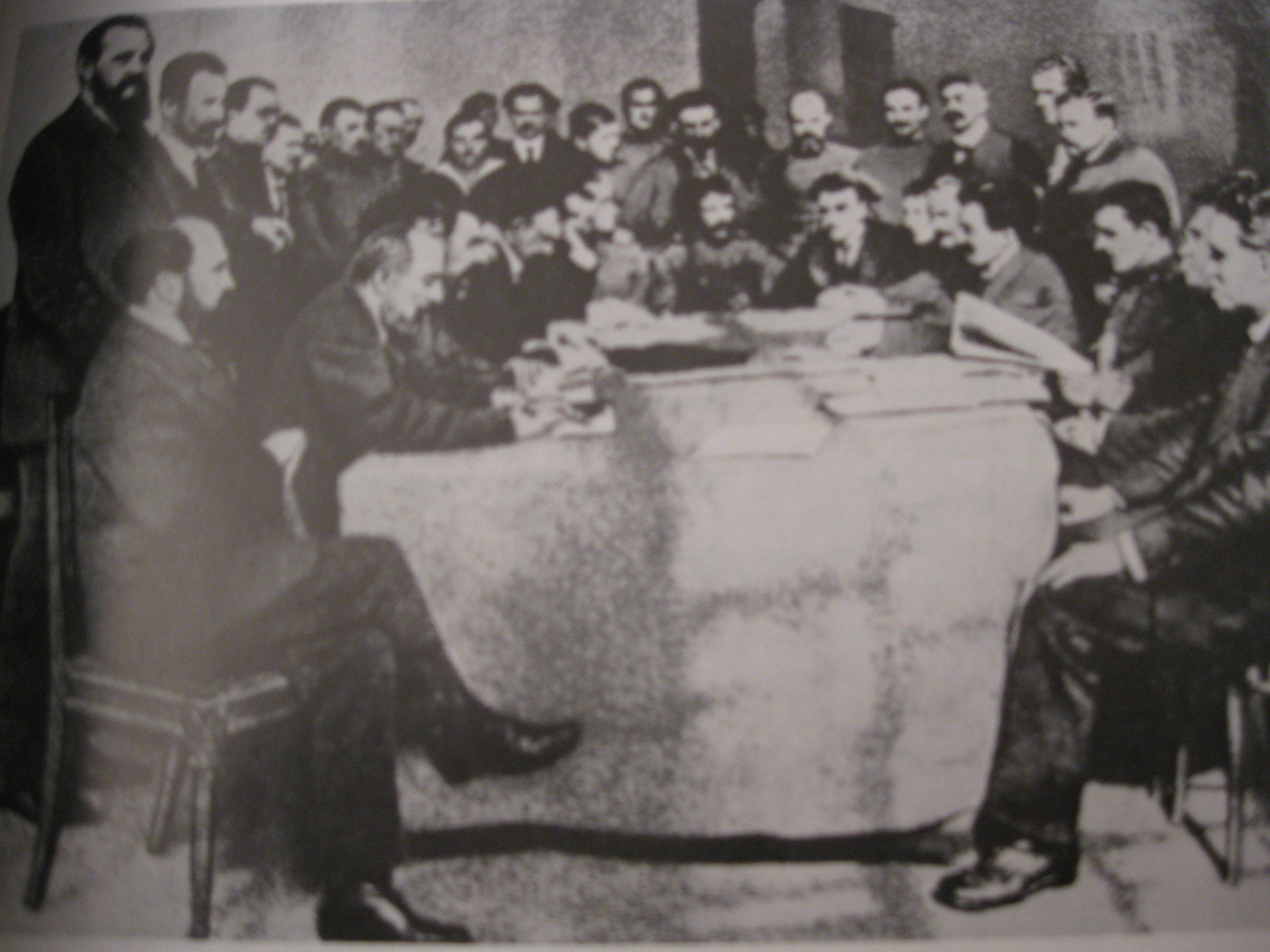 Partout naissent des soviets, sur le modèle de ceux de la révolution de 1905. Ci-dessus le premier soviet de Tbilissi