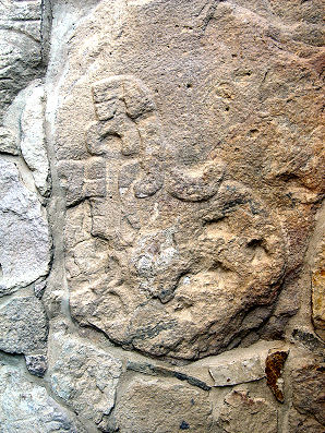 Certaines sculptures représentent des scènes de rencontre entre deux races différentes et non amérindiennes. Ici un barbu de type caucasien avec un homme de type négroïde, soit africain, soit polynésien, soit chinois… Évidemment, jusqu’à récemment on croyait que ces peuples n’avaient jamais mis le pied sur ce sol…