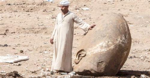 En dessous, on cimente une tête géante cassée représentant sans doute un roi