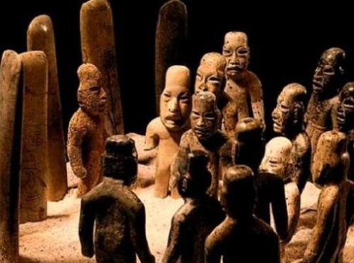 Représentation probable d’un conseil dirigeant les Olmèques (les anciens participent par leurs représentations en forme de menhir).