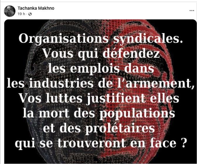 Méa culpa ? lequel ? ce n’est pas parce que tous les 10 bulletins d’usine du secteur militaro industriel, il y a 4 petites lignes d’un écho général qui égratine l’impérialisme et les profits que tirent les patrons des multinationales en France dans ces secteurs que cela en fait un bulletin révolutionnaire et communiste ...(l’étiquette sur la bouteille est une chose mais le bon vin peut tourner en vinaigre)