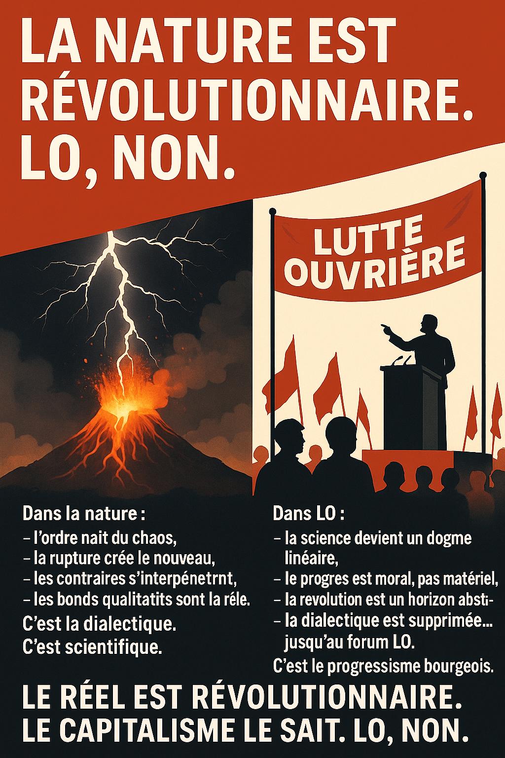 Lutte ouvrière ne risque pas de défendre partout dans les discussions scientifiques la thèse de la « dialectique de la nature », car elle ne s’occupe pas du tout de dialectique…