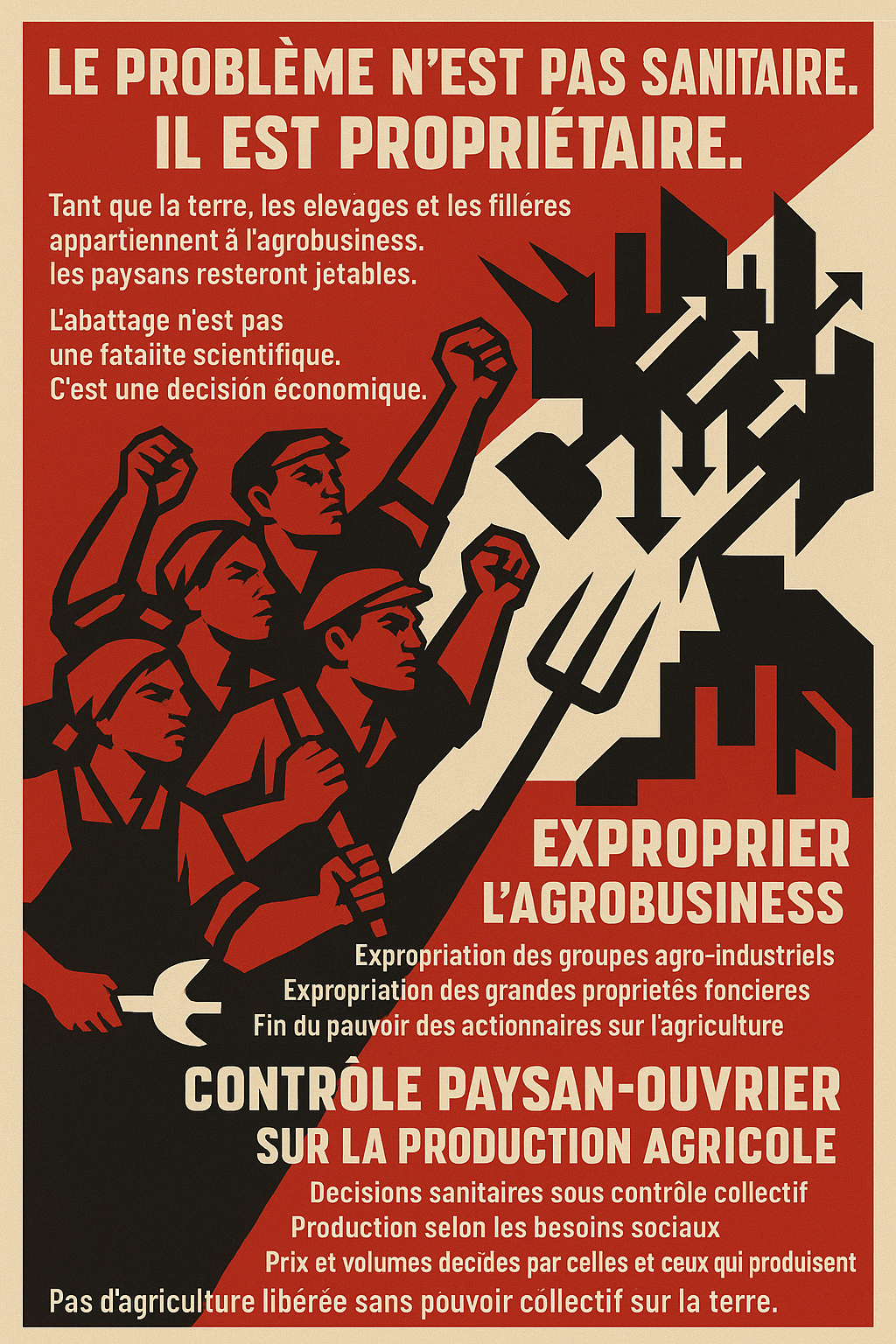 Ce que révèle l’Ariège, c’est que toute attente envers une “bonne décision” venue d’en haut est une illusion. La seule perspective sérieuse est celle d’un pouvoir collectif des producteurs et des ouvriers agricoles sur la terre, la production et les choix sanitaires. C’est là que commence une agriculture libérée de la logique du capital.