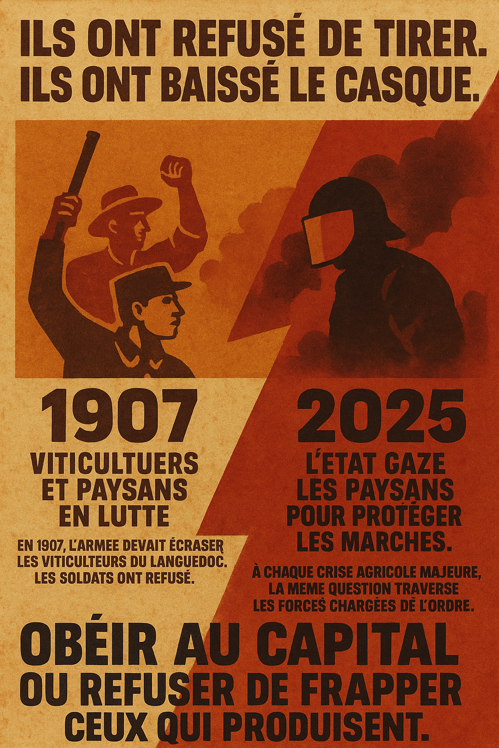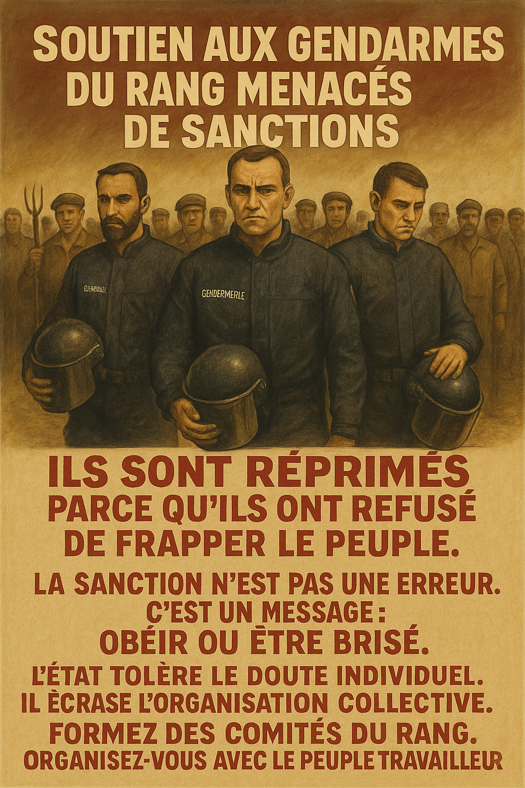 En Ariège, des gendarmes ont retiré leur casque face aux paysans. Le geste a frappé, à juste titre. Il dit une chose simple : l’obéissance n’est jamais totalement mécanique. Mais il faut être clair : ce geste n’a de portée politique que s’il est organisé, généralisé, assumé collectivement. Sans cela, il reste une parenthèse que l’État referme.