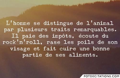 En fait, l’homme est le seul animal qui se croit… capable de sortir de l’animalité et en rêve, tout en y retombant sans cesse !!!