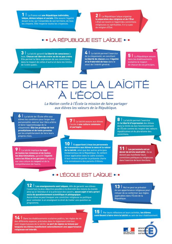 La « Charte de la laïcité à l’école » affirme que « La Nation confie à l’Ecole la mission de faire partager aux élèves les valeurs de la République. »