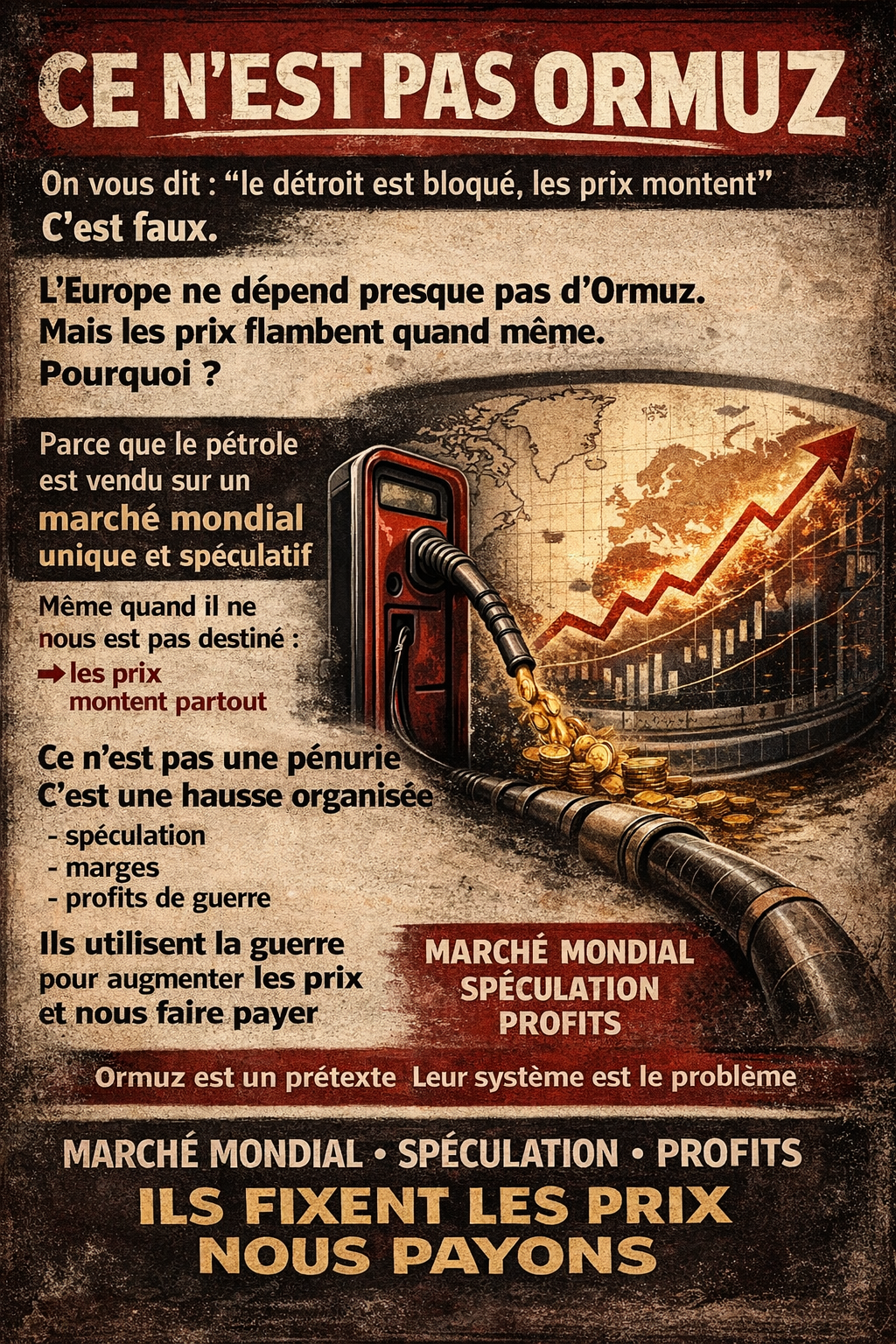 NPA-Révolutionnaires et la plupart des commentateurs expliquent la flambée par le blocage du détroit d’Ormuz. C’est vrai — en partie. Mais voilà ce qu’ils ne disent pas :