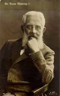 Franz Mehring, né en 1846, a d’abord été un farouche opposant au socialisme avant de rejoindre les rangs de la social-démocratie et de devenir une des figures les plus célèbres de son aile gauche. Auteur de synthèses inspirées par le matérialisme historique, il a notamment écrit une histoire de l’Allemagne, thème privilégié lors de son enseignement à l’école du parti (MEHRING Franz, Deutsche Geschichte vom Ausgange des Mittelalters : ein Leitfaden für Lehrende und Lernende, Berlin, Vorwärts, 1910 – 1911, 2 tomes). Il a occupé d’importantes positions dans la presse sociale-démocrate, dans la Neue Zeit mais aussi dans le journal quotidien Leipziger Volkszeitung. Son attachement à un marxisme orthodoxe l’amène à critiquer les positions et conceptions jaurésiennes sur l’histoire. Un de ses ouvrages les plus célèbres est sa biographie de Karl Marx (1918, réédité en français en 2009 par Bartillat). Adhérent du jeune parti communiste allemand, il meurt peu après sa fondation en 1919.