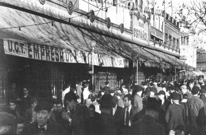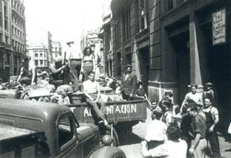 En Catalogne en particulier, une semaine après le 19 juillet let, les transports et l’industrie étaient presque entièrement aux mains des comités ouvriers de la C.N.T., et les travailleurs s’étaient regroupés dans les deux comités C.N.T.-U.G.T. réunis. Les comités syndicaux reprirent systématiquement en mains la production, la remirent en ordre et l’accélérèrent pour les besoins de la guerre. Par le biais des industries nationales de Barcelone, le même processus s’étendit à Madrid, Valence, Alicante, Almeria et Malaga, sans prendre toutefois le caractère généralisé qu’il avait en Catalogne. Néanmoins, dans les provinces basques, la grande bourgeoisie, qui s’était prononcée en faveur de la république démocratique, resta maîtresse de ses usines. Un comité U.G.T.-C.N.T. prit en charge la totalité des transports de l’Espagne. Des délégations d’entreprises ne tardèrent pas à partir à l’étranger pour déterminer les importations et les exportations.