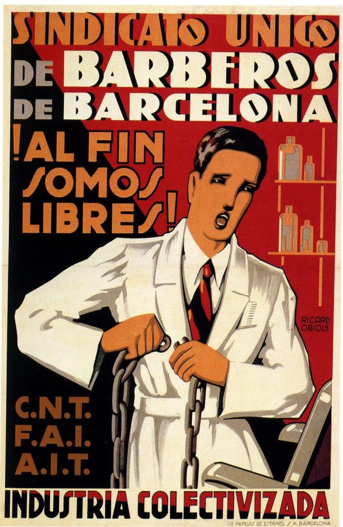 S’étant emparés de l’industrie, à l’exception des petites entreprises, les travailleurs la mirent en marche, organisés en « Colectividades » locales et régionales par branches d’industrie. A la différence de ce qui arriva dans la révolution russe, et qui met en évidence l’intensité du mouvement révolutionnaire espagnol, la grande majorité des techniciens et des ouvriers spécialisés, loin de se montrer rétifs à l’intégration dans la nouvelle économie, collaborèrent courageusement dès les premiers jours avec les travailleurs des « Colectividades ». La gestion administrative et la production en bénéficièrent ; le passage à une économie sans capitalistes s’effectua sans les difficultés et la perte de productivité que le sabotage des techniciens avait infligées à la révolution russe de 1917. Bien au contraire, l’économie gérée par les Colectividades réalisa de grands et rapides progrès. La stimulation née d’une révolution qui semblait victorieuse, la joie de travailler pour un système qui substituerait à l’exploitation de l’homme par l’homme, au joug de la misère salariée, son émancipation ; la conviction d’apporter à tous les opprimés de la Terre une espérance, une chance de victoire sur leurs oppresseurs, réalisèrent des merveilles. La supériorité productive du socialisme sur le capitalisme fut clairement démontrée par l’œuvre des Colectividades ouvrières et paysannes, jusqu’à ce que l’intervention de l’Etat bourgeois menée par les politiciens parasites du Front populaire rétablisse le joug brisé en juillet 1936.
