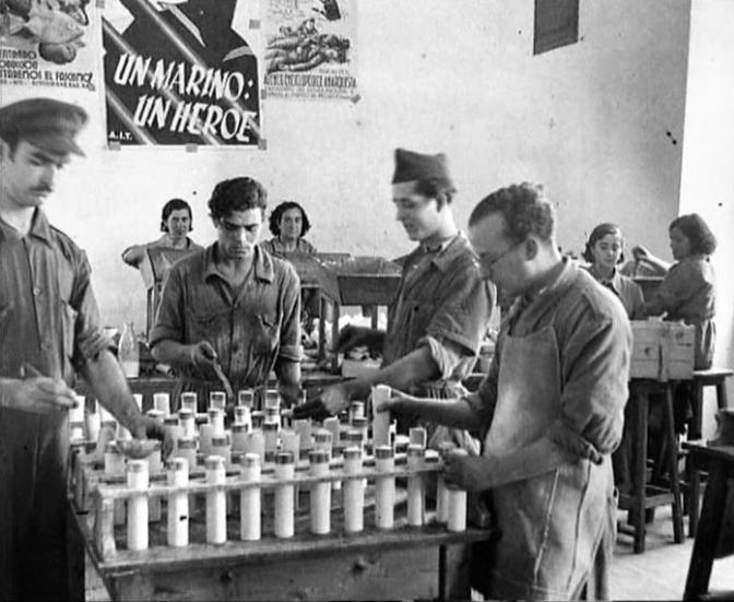 La fabrication d’équipements de guerre, industrie presque totalement inconnue dans la région, démarra rapidement en Catalogne. (…) En 1936, ouvriers et techniciens rivalisèrent pour augmenter leur productivité et prendre une multitude d’initiatives ; ils se réjouissaient de pouvoir développer une industrie socialiste et de produire le matériel nécessaire au triomphe de la nouvelle société. Ils envoyèrent répidement sur les fronts une grande quantité de matériel de guerre, dont une bonne partie était pour la première fois fabriquée dans le pays, la totalité pour la première fois en Catalogne.