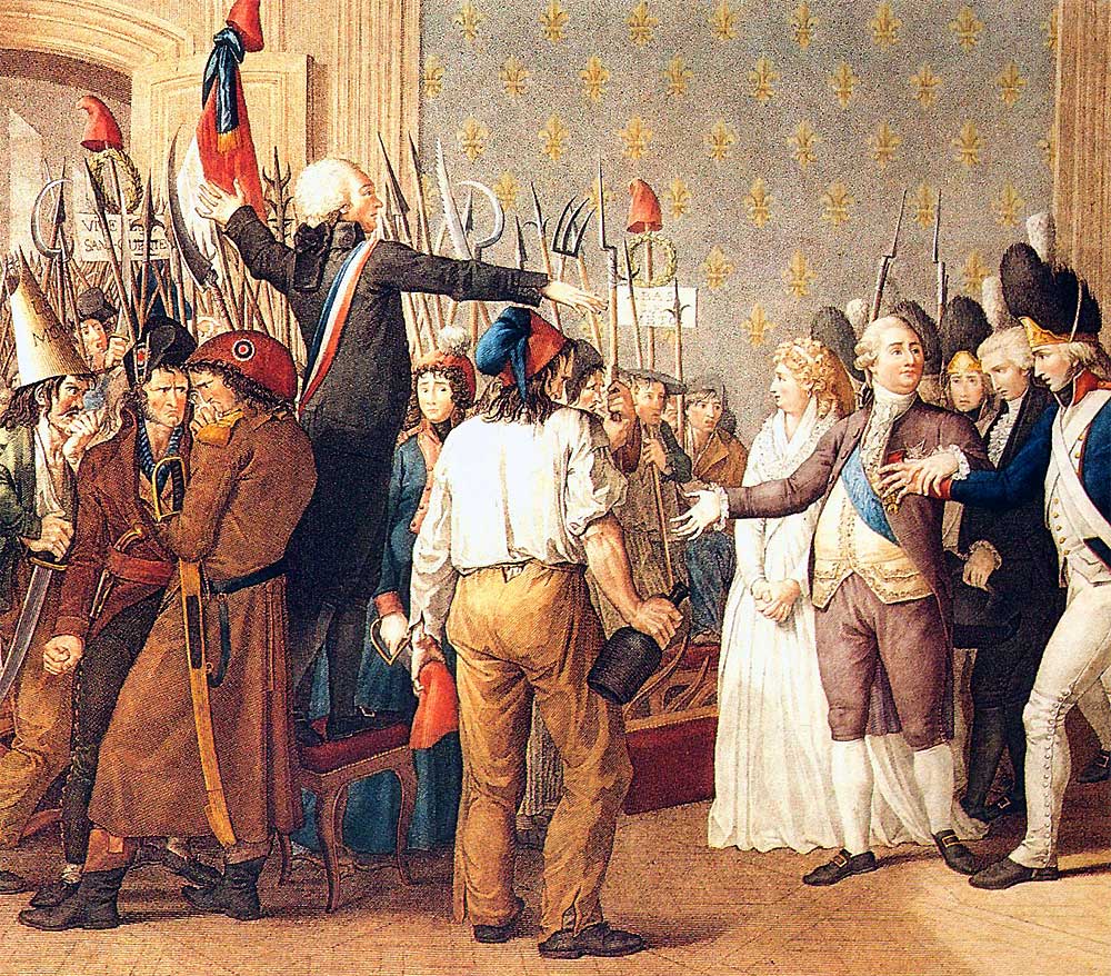 10 août 1792 : prise du château des Tuileries : chute de la royauté. Journée majeure qui détruit la monarchie constitutionnelle et impose de facto la République. Les Sans-culottes imposent également le vote universel masculin sans le cens. Victoire acquise avec les "Fédérés" venus des provinces.