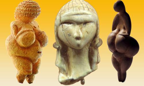 Il est clair que, partout sur la planète, les déesses ont largement préexisté aux dieux. Pour donner un ordre de grandeur des temps en question, on trouve des déesses dès le début du néolithique et même au paléolithique (par exemple 25.000 ans avant J.-C.), alors que les dieux n’apparaissent au plus tard que 2000 avant J.-C. (les cultes abrahamiques, dont les monothéismes des peuples sémites et occidentaux sont issus, datant au plus tard de 1800 avant J.-C.). On trouve des déesses-mères et des « vénus » plus de 20.000 ans avant J.-C., par exemple à Shanidar sur le Tigre, puis à Hacilar en Anatolie 6.000 ans avant J.-C., puis à Jéricho 7.000 ans avant J.-C. au pays de Canaan, ou encore à Jarmo en Irak, 6.800 ans avant J.-C. Et 6.500 avant J.-C., à Catal Höyük, pendant un millénaire au moins, plusieurs dizaines de sanctuaires sont consacrés à la déesse sous ses trois aspects, jeune fille, mère et aïeule. A Hassuna, 5.500 ans avant J.-C., comme à Halaf, 5.000 ans avant J.-C., et enfin à Ur et Uruk, dans les phases les plus anciennes de ces deux villes mésopotamiennes de l’Euphrate, comme dans les cultures badariennes et amratienne d’Egypte antique et à Sumer à la découverte de l’écriture en 3.000 avant J.-C., c’est encore des figurines de la déesse-mère qui ont été trouvées et aucune représentation d’un dieu.