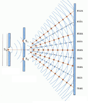Par analogie directe avec notre expérience d’ondes dans l’eau nous disons : « il y a interférence ».