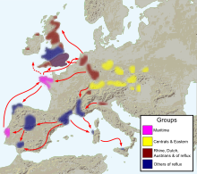 Les premiers mouvements de l’estuaire du Tage étaient maritimes. Un mouvement du sud a conduit vers la Méditerranée où des "enclaves" ont été établies dans le sud-ouest de l’Espagne et le sud de la France autour du golfe du Lion et dans la vallée du Pô en Italie, probablement via d’anciennes routes commerciales des Alpes occidentales utilisées pour distribuer des axes de jadéite. Un mouvement du nord a incorporé la côte sud de l’Armorique. L’enclave établie dans le sud de la Bretagne était étroitement liée à la voie fluviale et terrestre, via la Loire et à travers la vallée du Gâtinais jusqu’à la vallée de la Seine, puis au Rhin inférieur. Il s’agissait d’une route établie de longue date, qui se reflétait dans les premières distributions de hache de pierre, et, via ce réseau, les béchers maritimes ont atteint pour la première fois le Rhin inférieur vers 2600 avant notre ère.