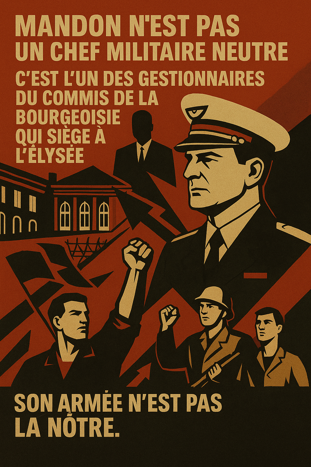 RP, NPA-R et LO disent, chacun à leur manière, que la bourgeoisie prépare la guerre et que Mandon l’avoue. Mais ils laissent les travailleurs désarmés politiquement face à cette offensive : pas d’organes à construire, pas de stratégie de prise de pouvoir, pas de plan pour désorganiser matériellement la machine de guerre.