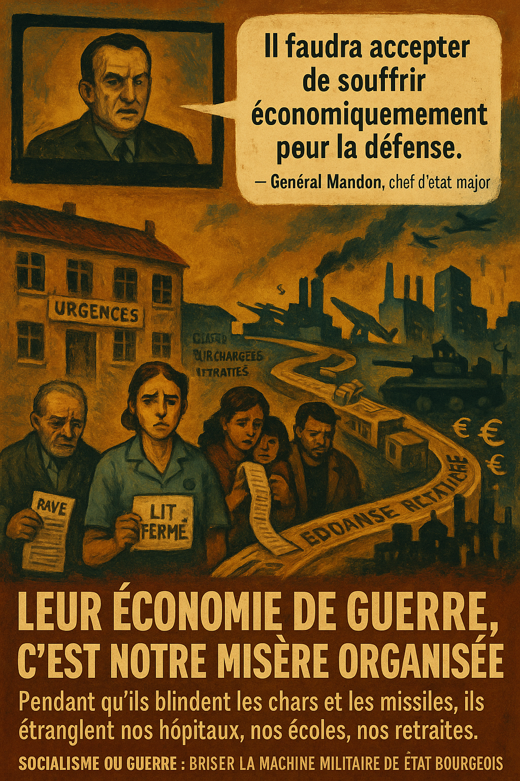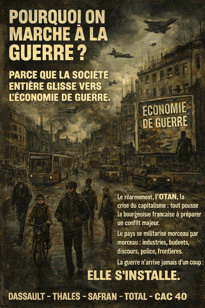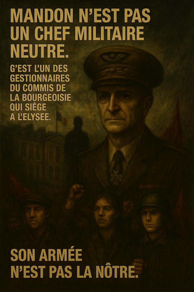 De ce point de vue, leurs réactions jouent un rôle objectif de ceinture de sécurité autour de l’économie de guerre : elles canalisent l’indignation de classe dans des formes inoffensives pour l’État et la détournent de ce qui pourrait vraiment faire peur à Mandon et aux siens : des comités de soldats, des comités d’usine de l’armement, une stratégie explicite de destruction de l’appareil militaire de l’État bourgeois.