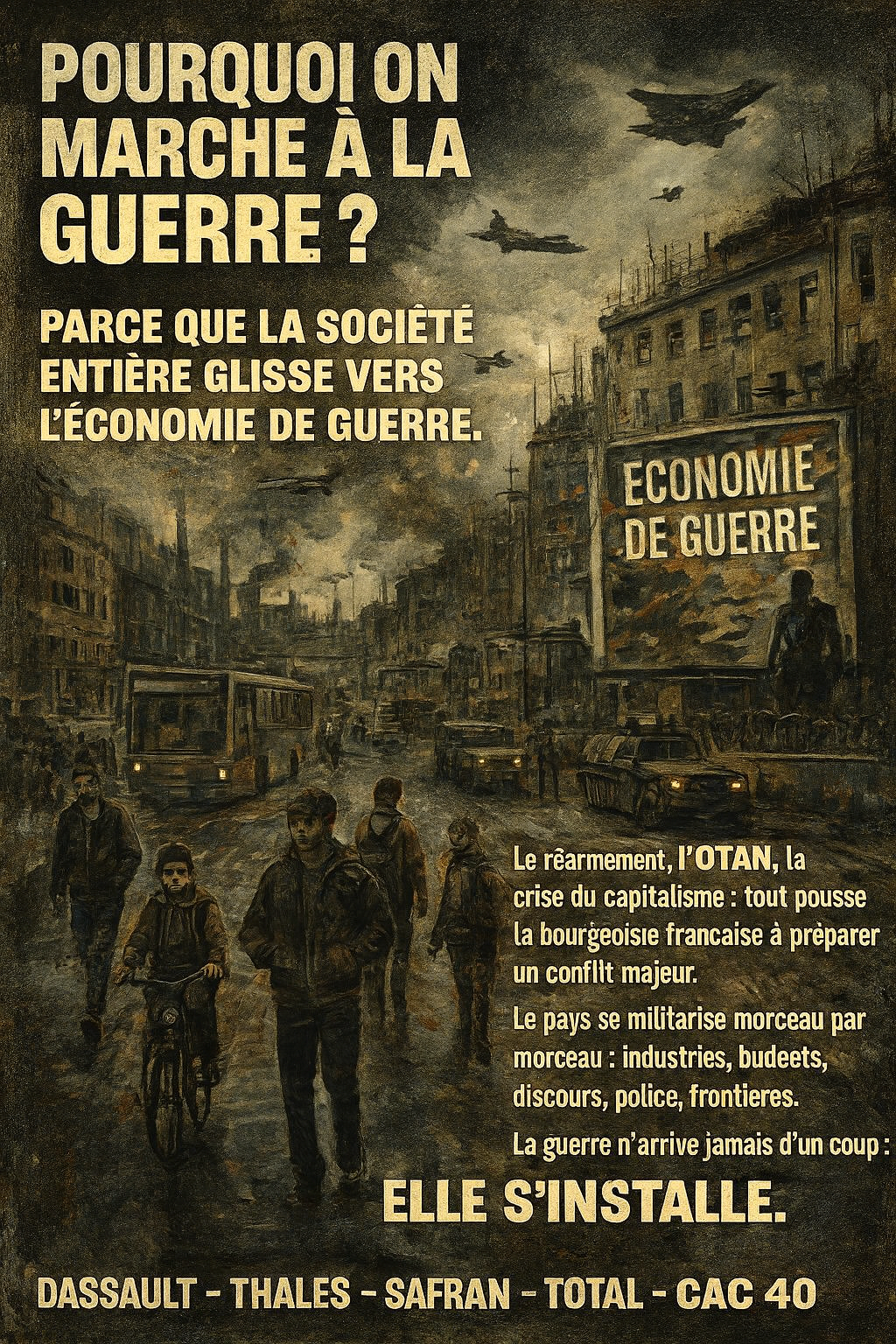Ainsi, Révolution Permanente, NPA-R, LO, CGT, FO, Solidaires, CFDT composent, chacune à leur niveau, une ceinture de sécurité politique autour de l’économie de guerre :