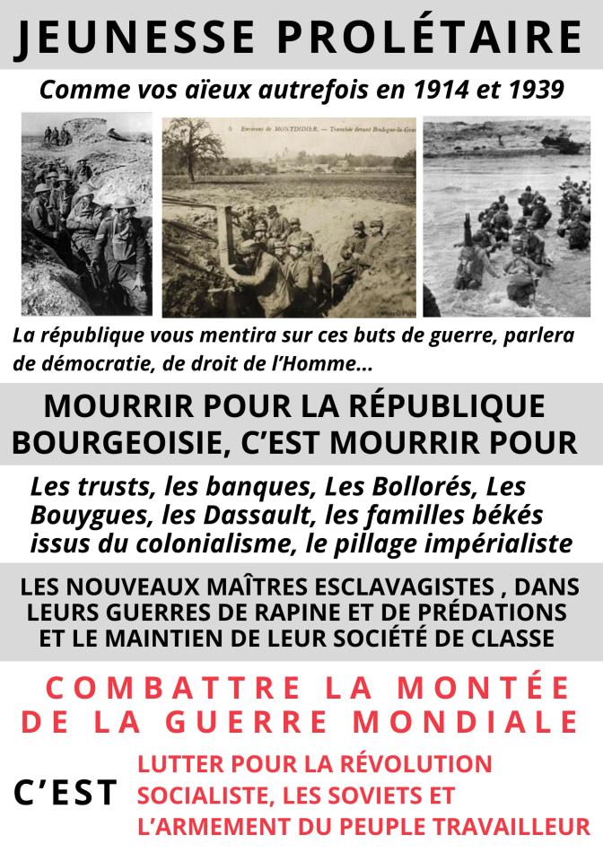 Face au bellicisme, la jeunesse qui ne veut pas servir de chair à canons doit réagir !