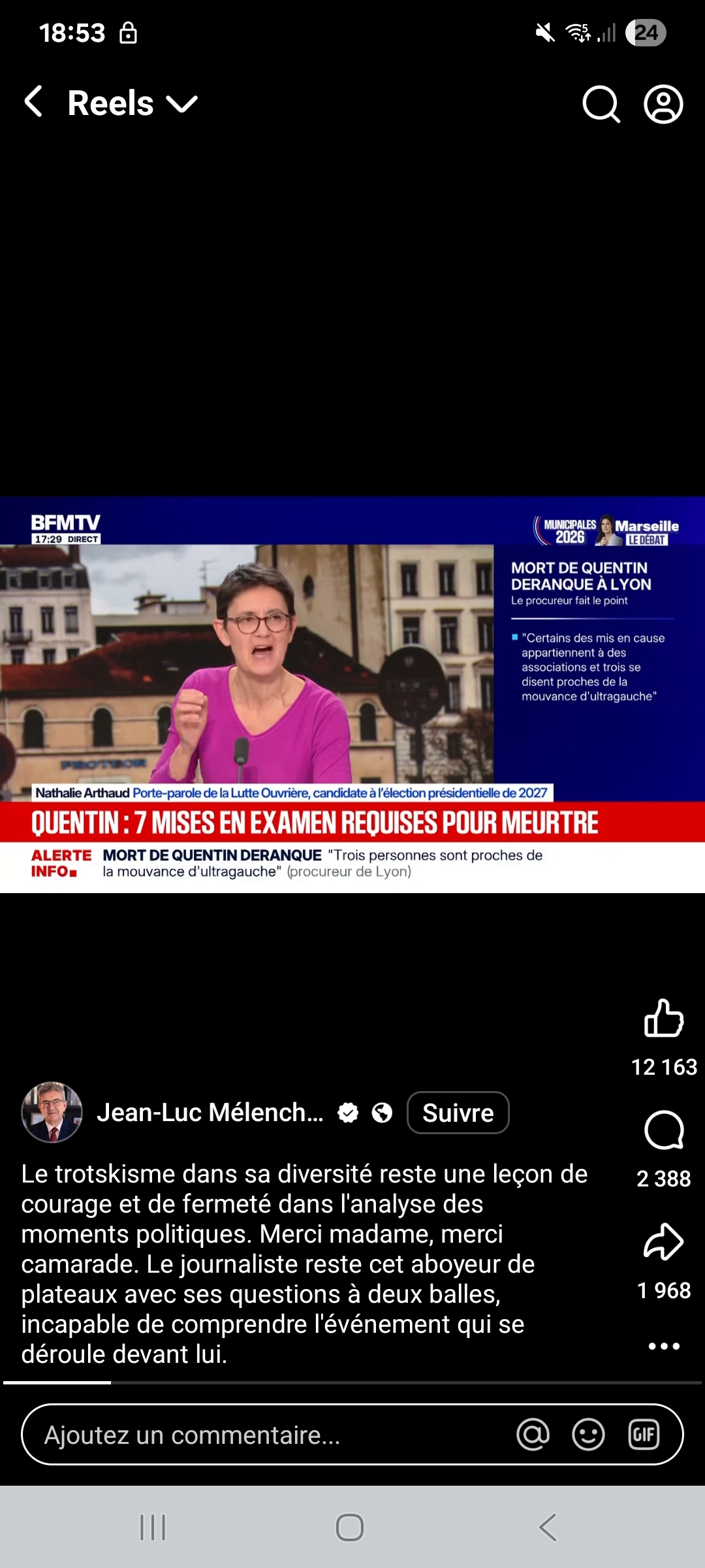 LO, dont les militants en vue sont des carriéristes syndicaux, a donc décidé, en cohérence avec sa politique, de "défendre" le politicien bourgeois JL Mélenchon, d’arrêter de le traiter de bourgeois, face à la "répression" et les "hordes fascistes" qui frappent LFI (vous ne les voyez pas ? vous ne voyez pas non plus les chars russes annoncés par Macron ? vous manquez de conscience !).